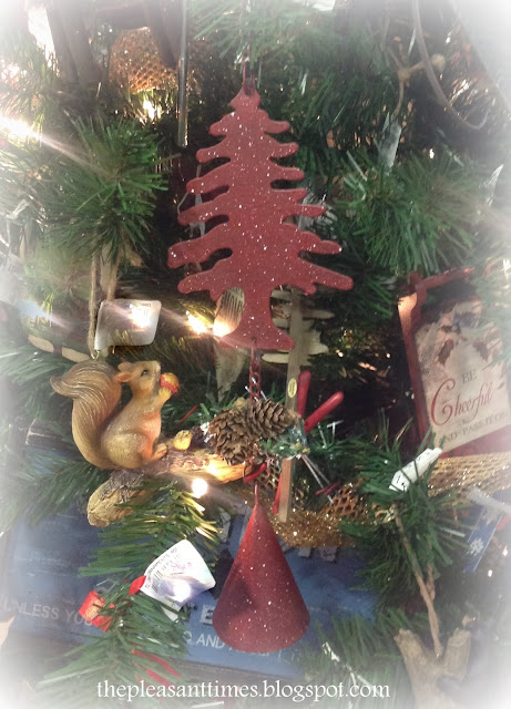 I had the privilege to meet the fellow who was in charge of Christmas this year-- that is, Christmas at the hardware store. He took me around and showed me things about each tree, and told me their names, which I have mostly forgotten as I sit down to post about it. I'm calling this tree "Bears in the Woods" but I think it isn't far from the intent of the original name.